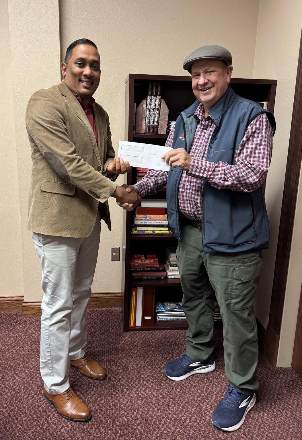 Doug Case (left) with a check for