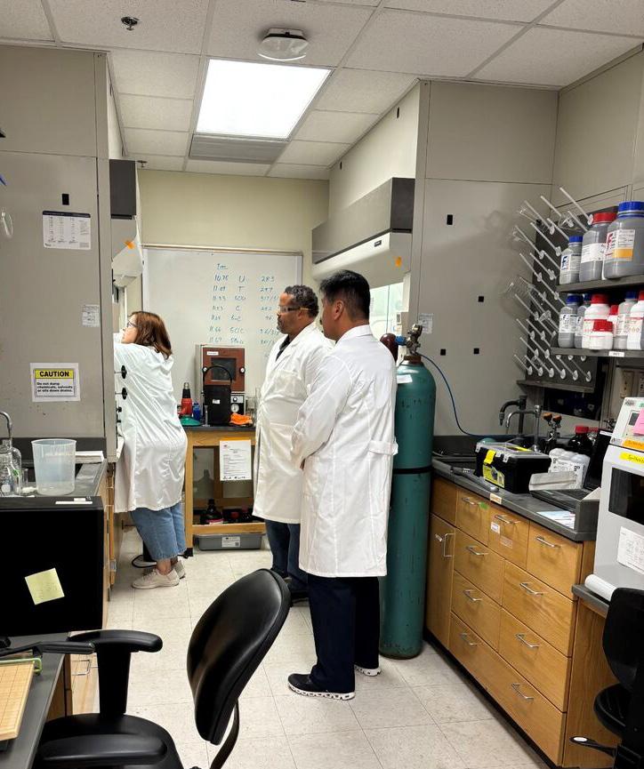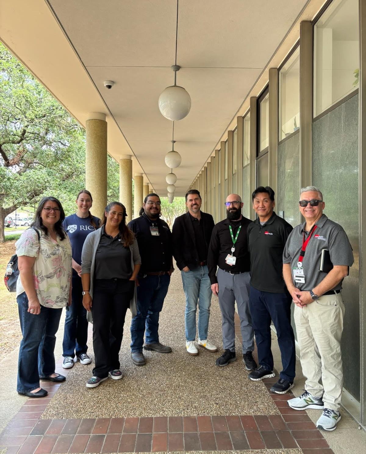 In March 2025, members of the Rice University EHS team as well as a representative from the University of Houston EHS team, visited UTMB to observe our approach to monitoring dichloromethane (DCM) exposures and implementing control measures. UTMB EHS subsequently visited Rice laboratories to provide guidance and share best practices, supporting the development of effective chemical safety strategies and fostering collaborative learning between the two institutions.