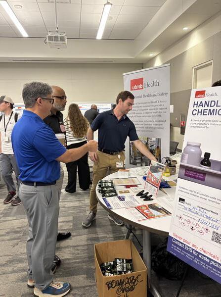 In May, EHS participated in UTMB’s Research Day Core Showcase. Representatives from each EHS discipline participated: ROccS, EPM, and LS/EOC attended to connect with researchers, students, and staff. EHS fielded questions and share helpful information about how EHS supports research activities across campus. From lab safety to hazardous waste management and radiation protection, our team is here to help ensure safe and compliant research environments. Research Day is an annual event presented by the Council of Vice Chairs for Research. Research Day 2025 highlighted the best of UTMB’s current research as well as the Core Showcase. The Core Showcase offers an opportunity for researchers to meet and learn more about the teams that support their activities.