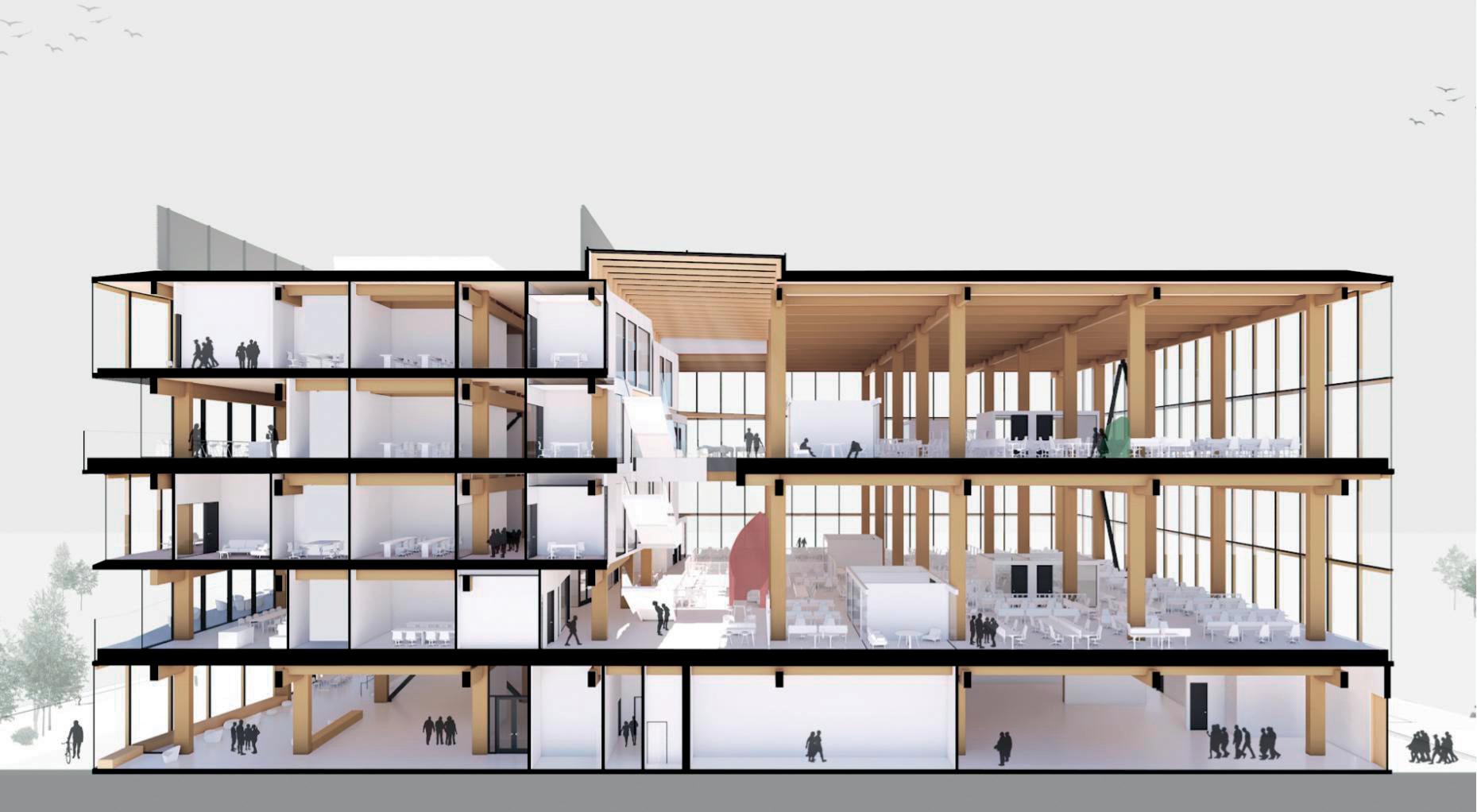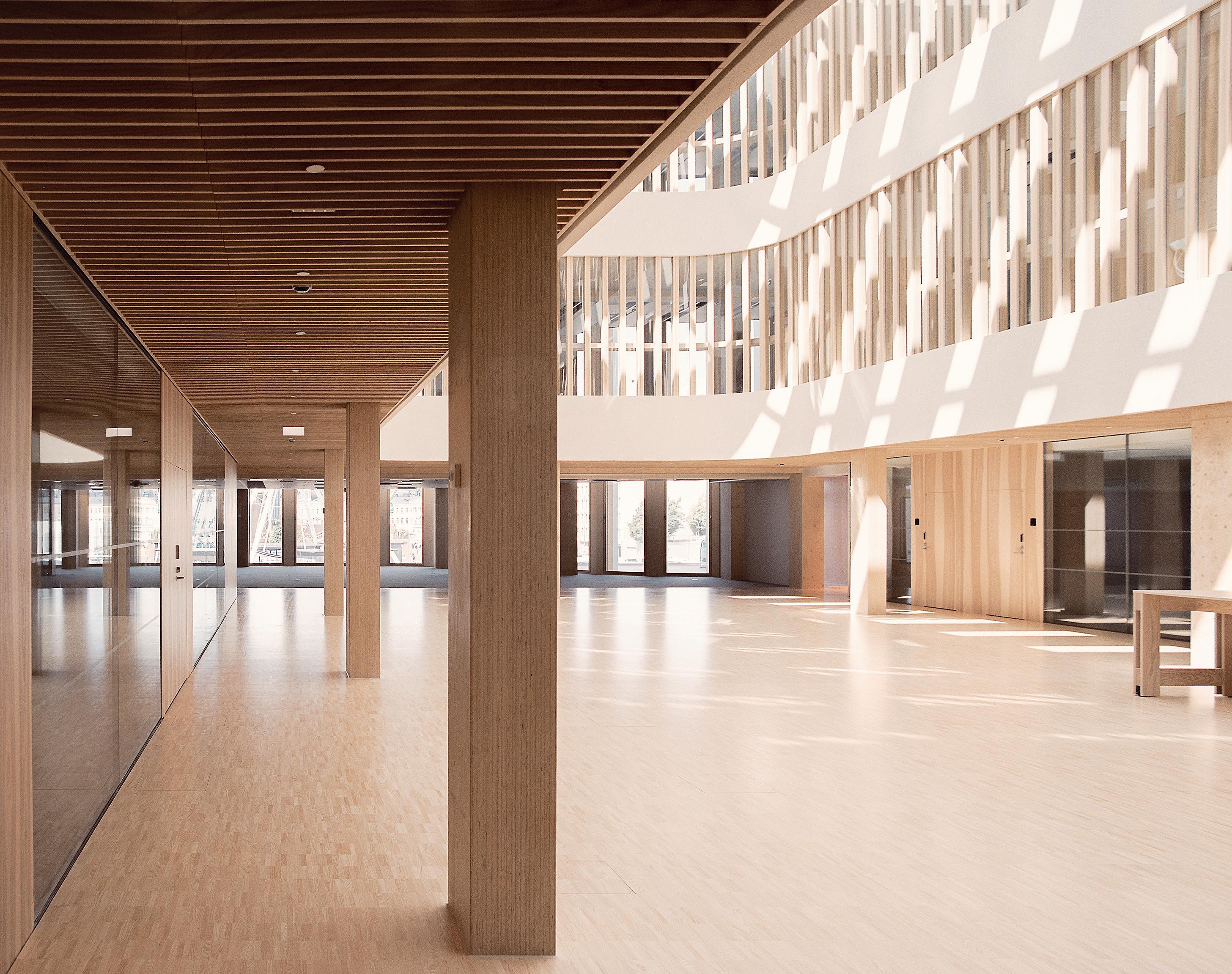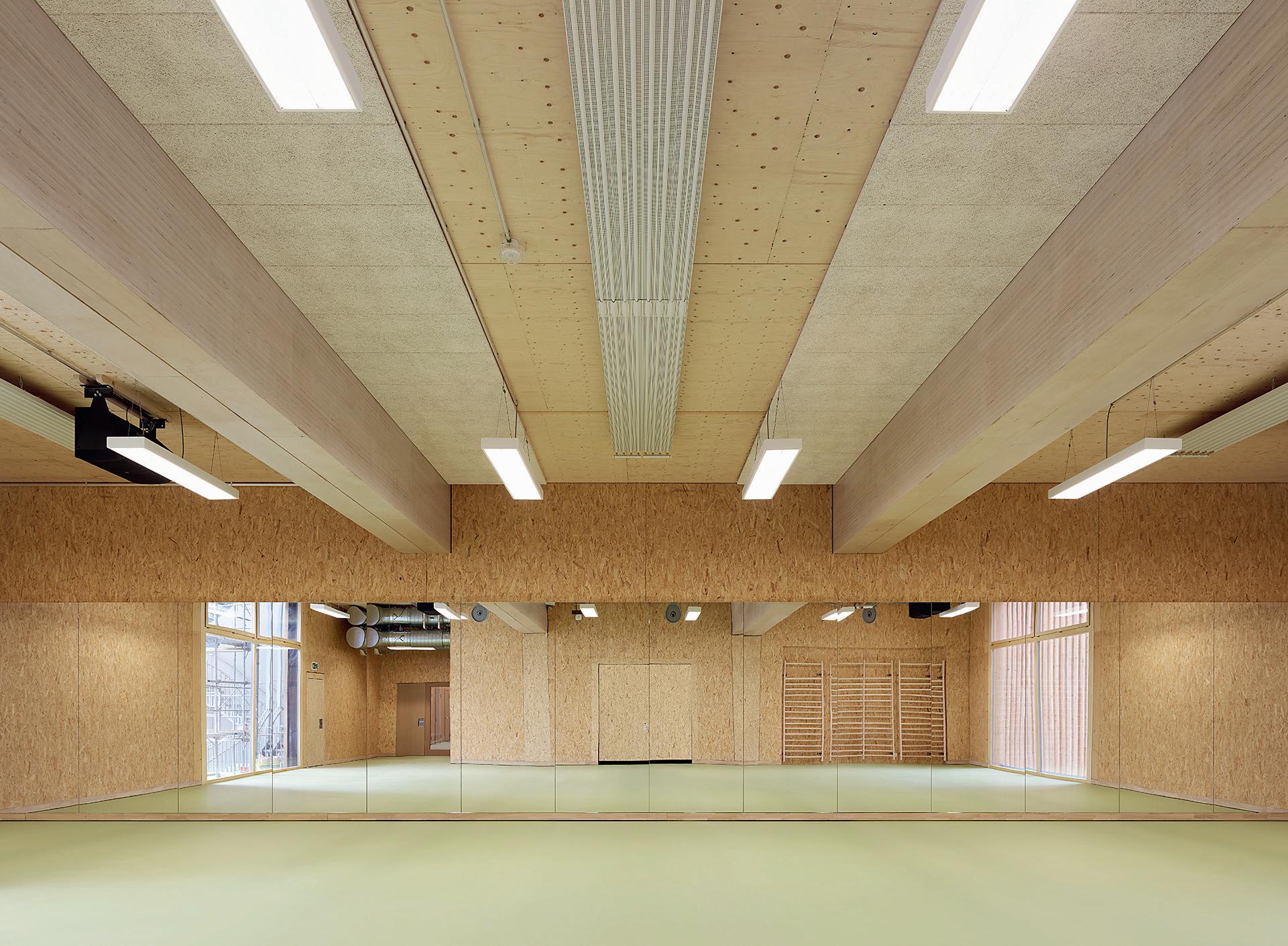 The interior’s exposed structure made of spruce and Douglas fir gives a warm and inviting feel, while the walls are clad in wood fibre for good acoustics. Feedback on the project is unequivocal: the wood is having a beneficial impact on the wellbeing and concentration of the target group.« w| dream.archi