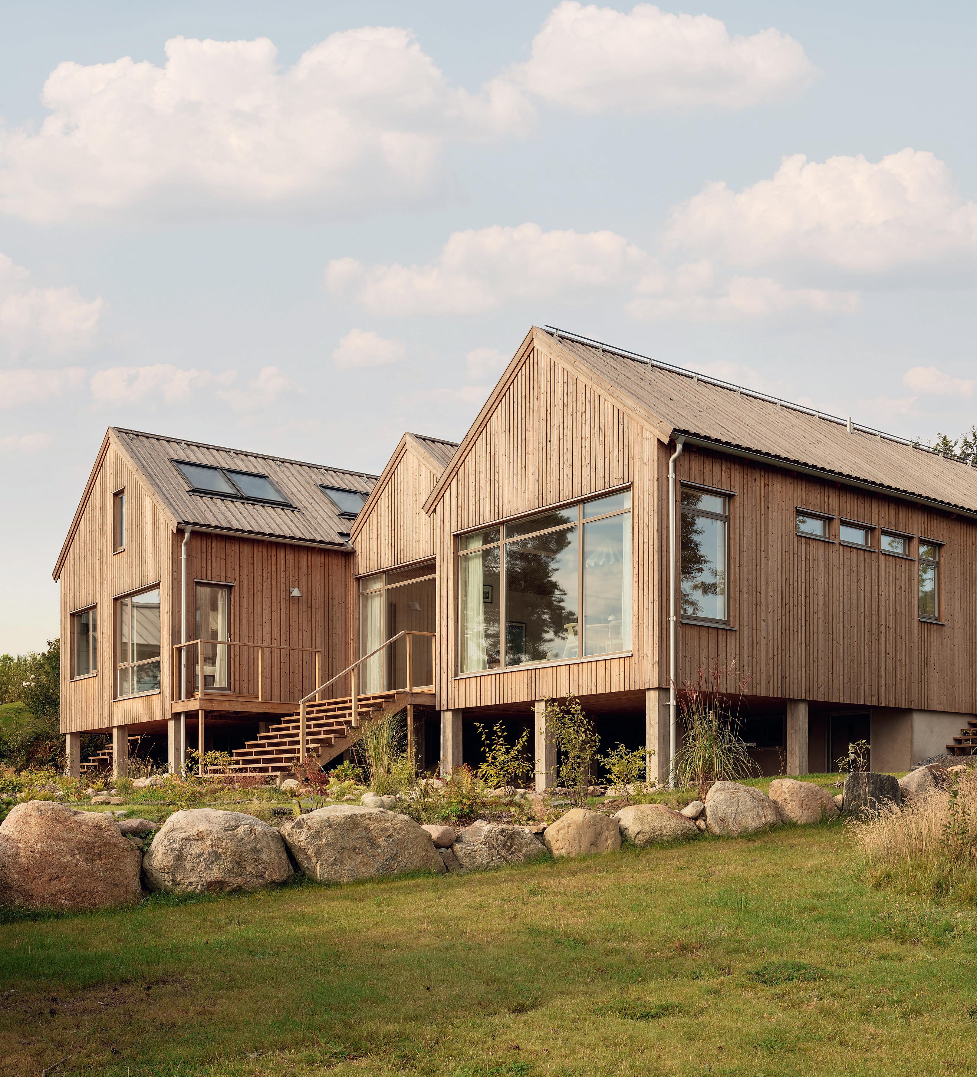 The façades are clad with frame-sawn Douglas fir coverboarding, while European larch is used for the bargeboards and other vulnerable sections.« w| wingardhs.se