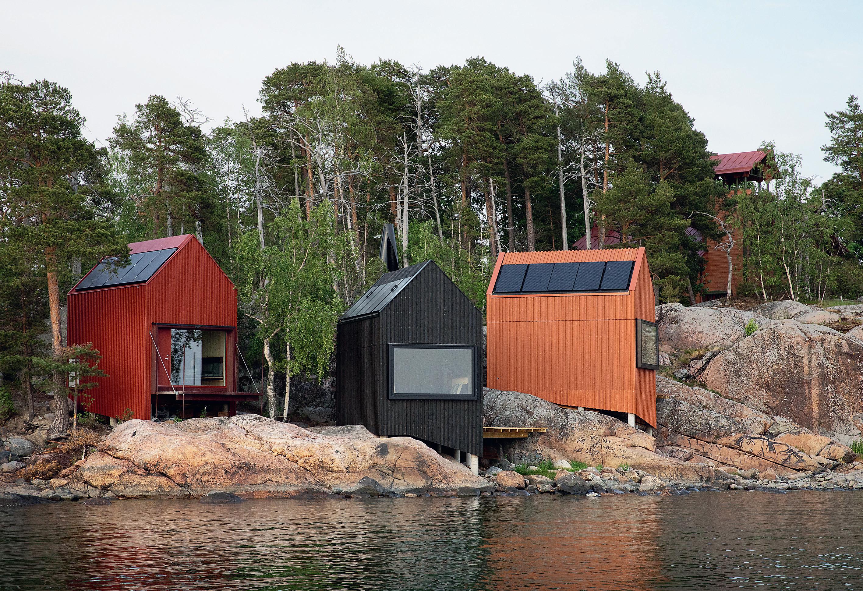 The cabins boast a colour scheme that blends in with the Finnish archipelago, where they can be set up in complete privacy.