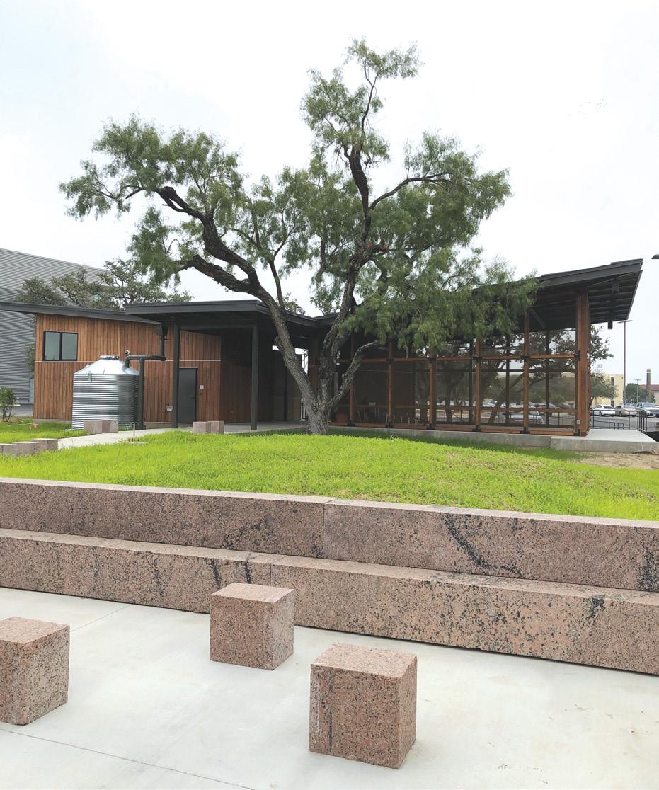 Situated on the western edge of UTSA’s Main Campus—and in the recharge zone of the Edwards Aquifer, the primary source of water for most of San Antonio—the Mesquite Learning Lab provides an immersive space for UTSA students as well as the public to learn about environmental issues. Bioswale channels, a rain garden and a rain collection cistern help manage stormwater runoff from the surrounding watershed. The Mesquite Learning Lab is the first building of a planned nature area on campus.