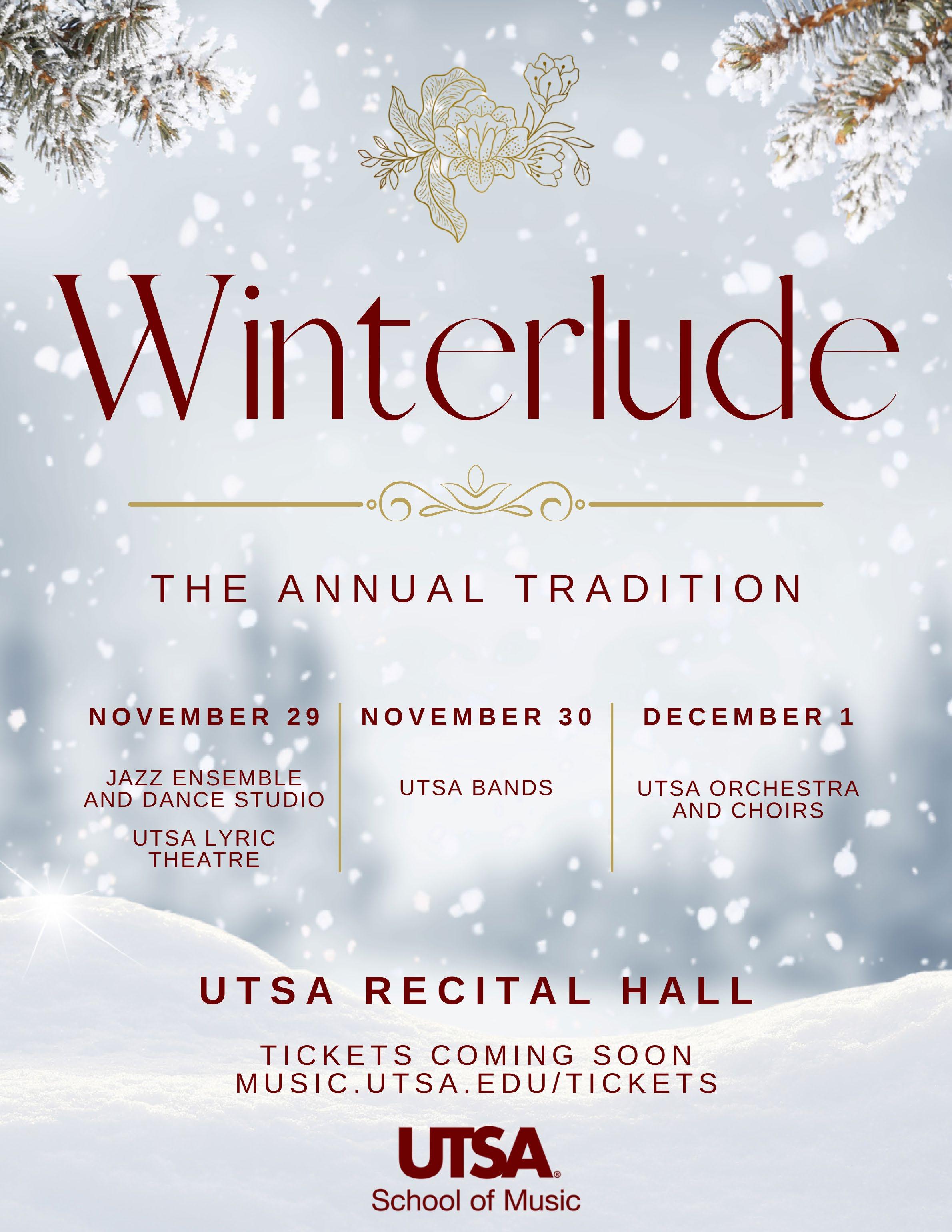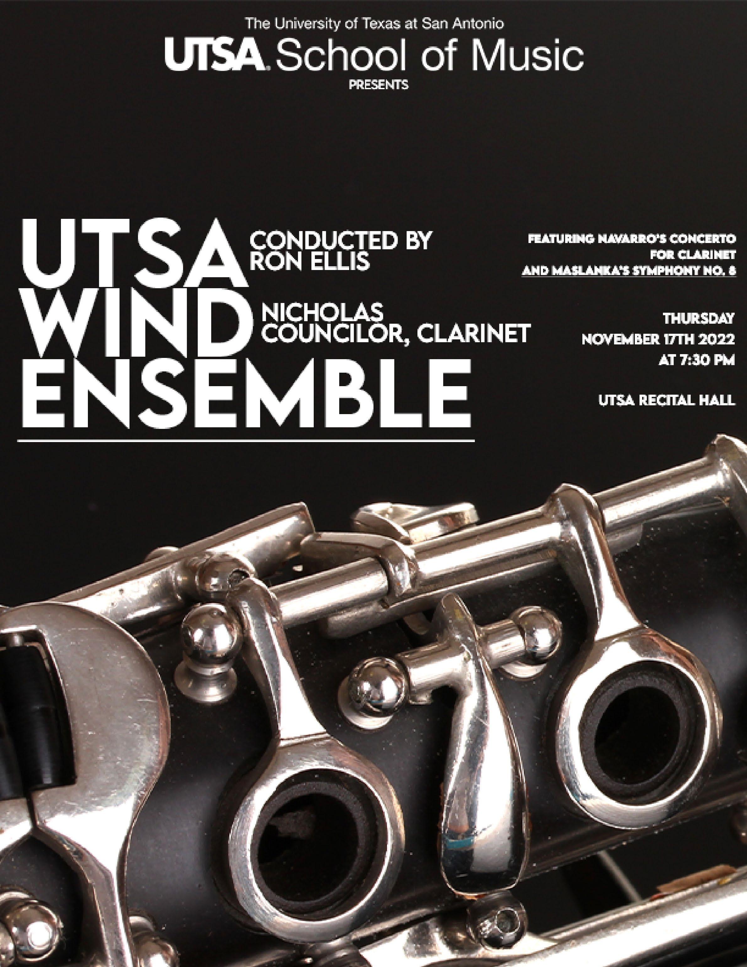 Welcome to the November issue of Cadenza! This month brings some of our most special concerts of the fall season, and I invite you to peruse this issue and mark your calendar. Two big collaborations take place in November; the first coming up later this week is our Lyric Theatre production of Massenet’s Cinderella, which features a set designed and built by Klesse College of Engineering and Integrated Design students. Please join us for pre- and post-performance activities which are outlined here. This is quickly followed by the UTSA Orchestra on Nov. 8th featuring guitarist Isaac Bustos, and Mariachi Los Paisanos on Nov. 11th. And on Nov. 13th, Fort Sam’s Own 323rd Army Band is coming to campus for a special Veteran’s Day celebration, where they will join our Wind Ensemble for a wonderful program! This is only a sampling of what will take place this month, and we hope to see you on campus soon.
