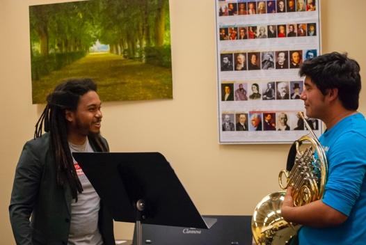 Kevin Newton, for example, asked a student horn player to take different colors, like purple and orange, and to play certain passages in the way they’d imagine those colors sounding. As a result, the student was able to key on dynamics in the piece and bring out different characteristics in the music, making the sound much more artistically vivid in key passages