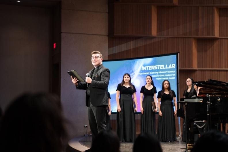 It was a collaboration that no one except Jordan Boyd and Dr. Chris Packham saw coming. The UTSA School of Music and the Department of Physics and Astronomy partnered up to present Interstellar, a choral concert that offered a selection of works as a commentary on scientific research in astronomy and telescope technology.