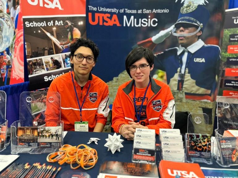 Andrew Rubio (left) and Clarisa de la Garza (right) at the UTSA School of Music TMEA booth.