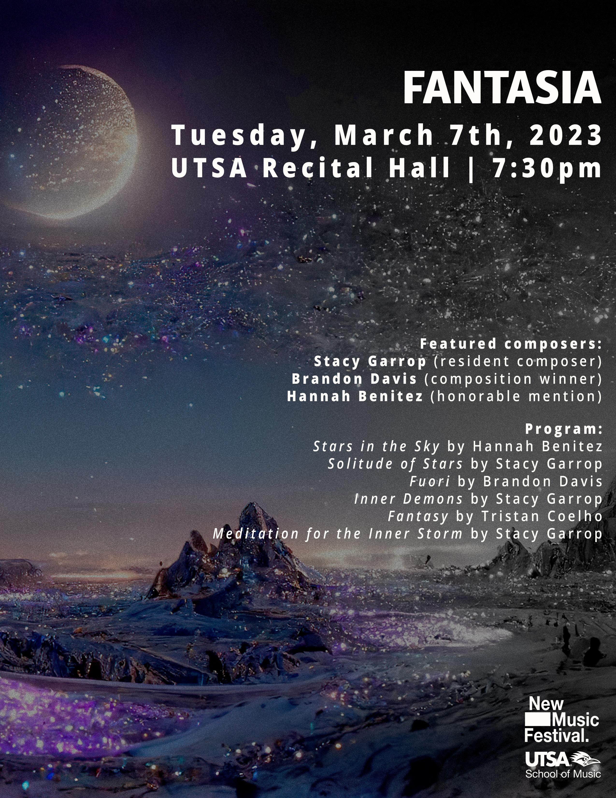 Dr. Garrop’s music will be performed throughout the New Music Festival at the UTSA Recital Hall from Monday, March 6th, to Thursday, March 9th .