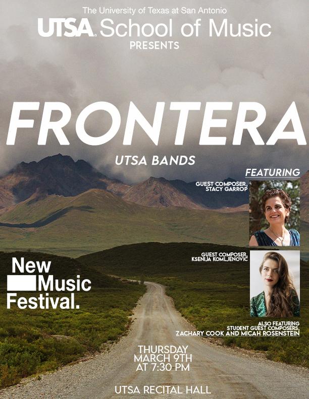 On the festival’s final night, Thursday, the Symphonic Band will premiere two new works. Micah Rosenstein, one of the winners of the first annual “call for scores” for the UTSA New Music Festival, will receive a world premiere for his piece, titled “The Road to Triumph.” It was inspired by his experiences throughout the COVID-19 pandemic. The consortium premiere is titled “Slavdom,” by Dr. Komjenović, and it is based on her experiences with music from her home country, Serbia. And thus, the New Music Festival shall conclude not with a close, but with the opening of doors and new frontiers to the world as our student artists usher in the next generation of music.