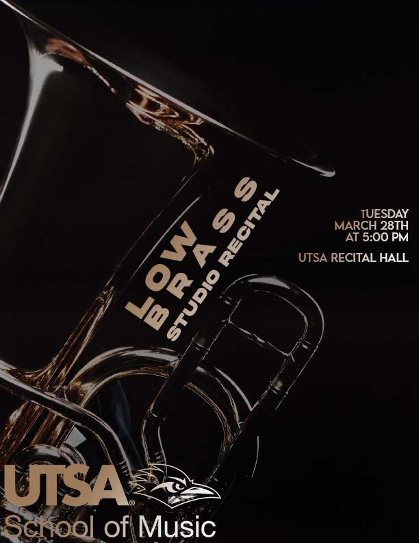 Remember to check our online event calendar for the most up-todate concert information. And share Cadenza with your friends and family outside of San Antonio; they can check out the livestreams of our performances on our School of Music Facebook page! As always, we hope that all of you will take this opportunity to follow us on social media, where we post fun features on our students, faculty, and staff, link to our livestreams, and share photos and video clips of all that is taking place in the UTSA School of Music.