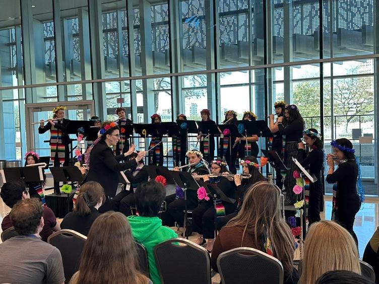 heads Although it was February, there were almost assuredly enough San Antonians who are 100 percent on board with Fiesta yearround to warrant the especially colorful attire from the Flute Ensemble. And of course, nothing short of extraordinary should be expected from anything directed by Dr. Rachel Wo lf Violinist Keith Beene made a special guest appearance as m.