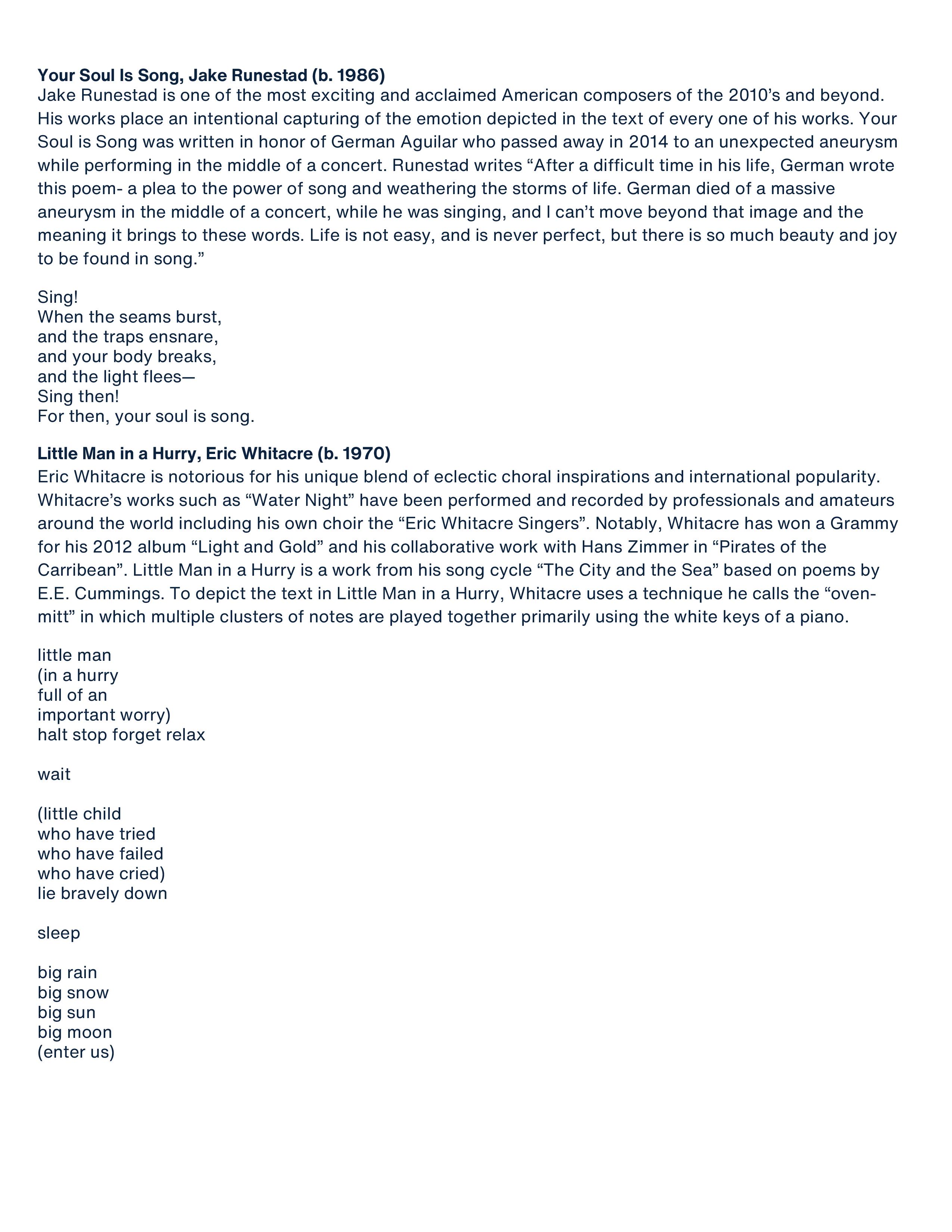 This prestigious event, one of the world’s largest choral conferences, brings together choral directors, educators, performers, students, and industry professionals from across United States and internationally. Our Chamber Singers will present Jake Runestad’s Earth Symphony at the final concert on Saturday, March 22, at the esteemed Meyerson Symphonic Center in Downtown Dallas.