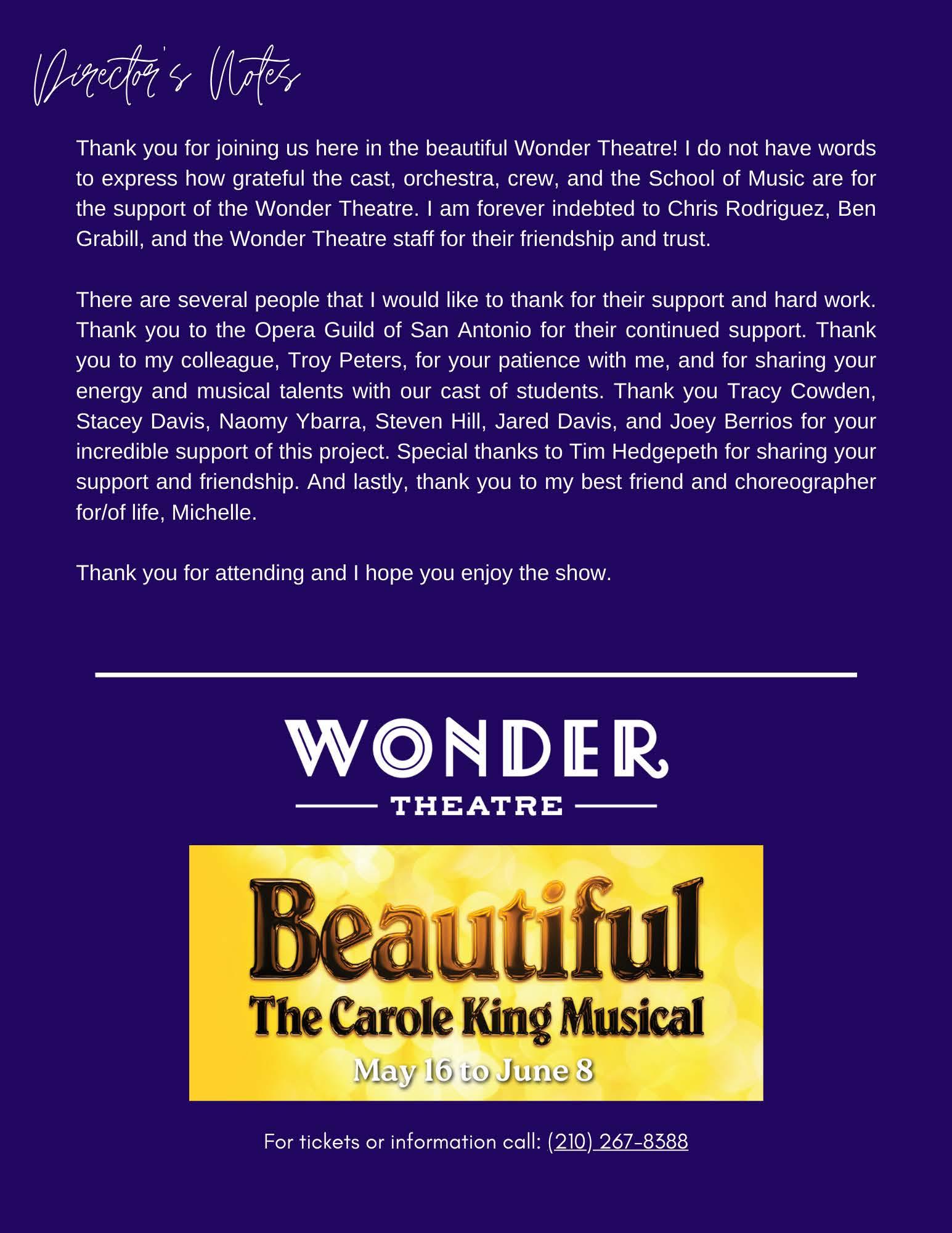 Conducted by Troy Peters and directed by William McCrary with choreography by Michelle Pietri. Keep up to date with UTSA Lyric Theatre at utsalyrictheatre.org.