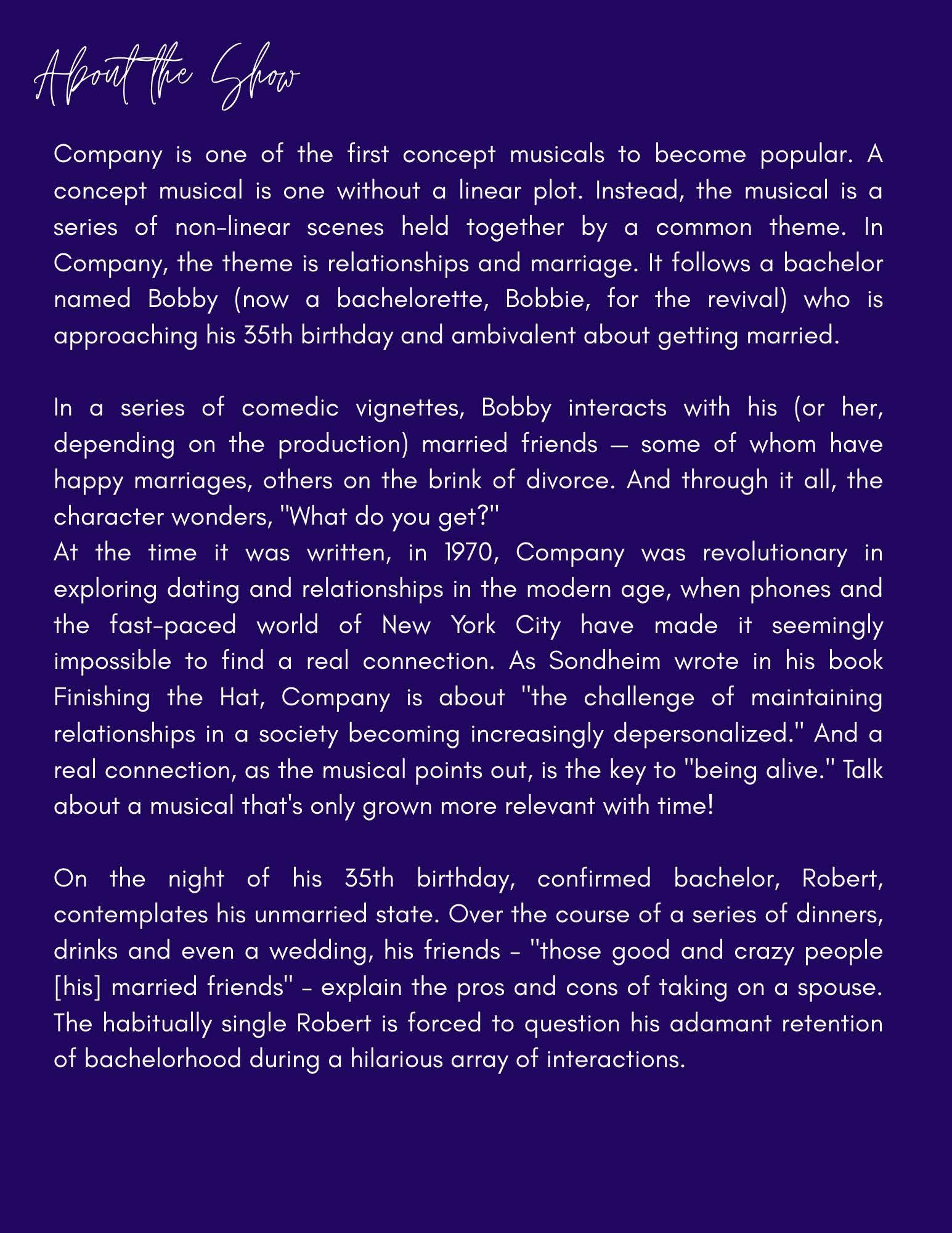 UTSA Lyric Theatre presents Sondheim's COMPANY, April 10th-13th, 2025, at the Wonder Theatre in San Antonio, Texas.