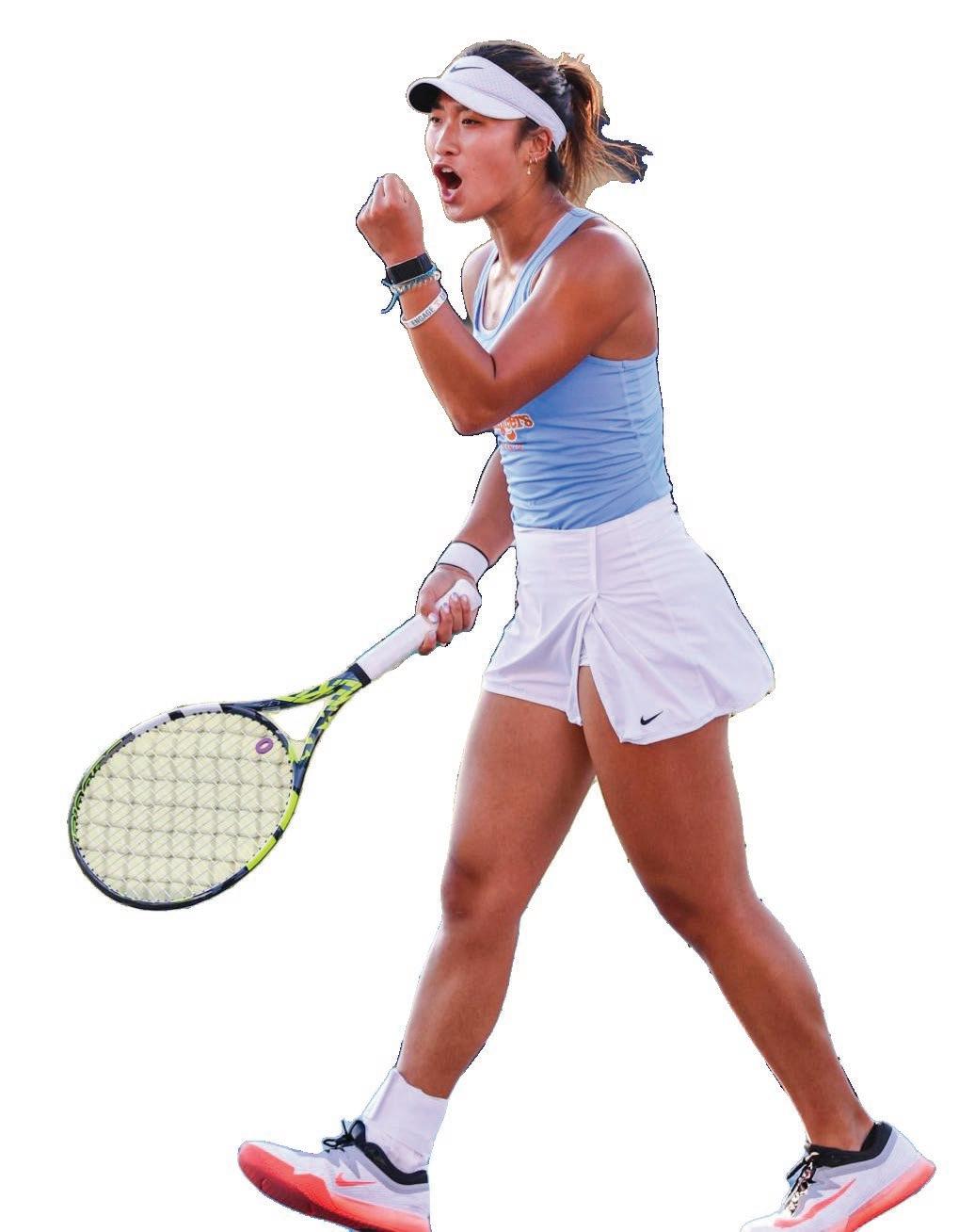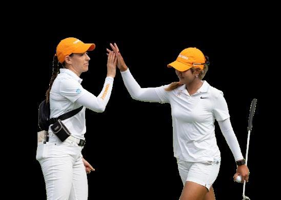 much tighter battle. The Lady Vols beat seven-seeded Texas A&M 3-2. Van Kan would dominate in a match where she led from the first hole, ultimately winning by four holes. Down one with one hole to play, Engesæth carded a massive birdie for the Lady Vols, forcing a playoff. In the playoff, she made quick work of her opponent, winning in one hole, a win that put Tennessee in the driver’s seat for the match. The Aggies responded with a match victory of their own to make it 2-2 heading into the final match. Messimer led for most of the match, but a double-bogey on hole 15 brought the match to within one. She responded with back-to-back birdies to close out the match, winning by three holes and sending the Lady Vols to the championship round. In the final, the Lady Vols faced No. 4 seed Auburn. Carrying momentum from her clutch semifinal victory, Engesæth dominated her match, winning by six holes. Sophomore Sophie Christopher also produced a dominant sixhole victory, carding four birdies. Van Kan secured the final victory for Tennessee in her match. On