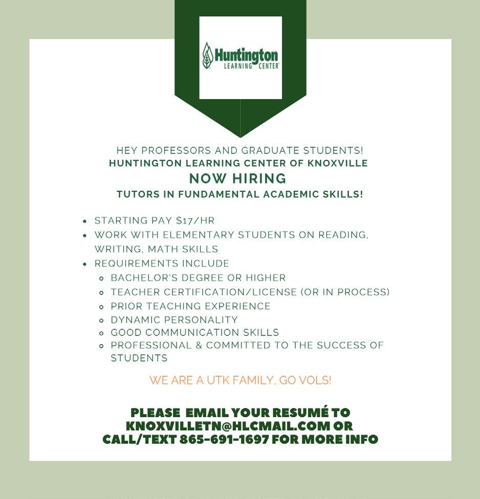 TO PLACE AN AD, please email admanager@utk.edu.