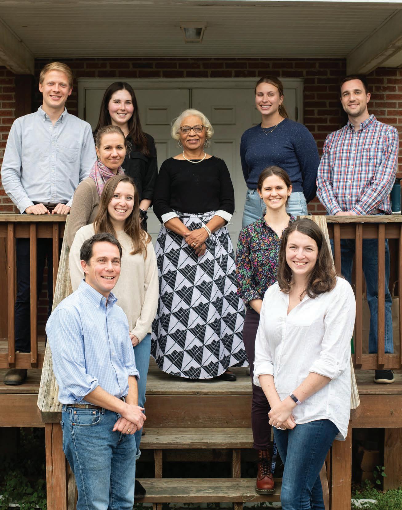❱ Steven Higgens ’23, Jeremy Lowrey (the counsel below), Harper North ’23, Laura Lowry ’23, Boyd Hampton ’23, Professor Daniel Ortiz, Julia Grant ’23, Jeffrey Horn ’23 and Emily Bucholtz ’23 stand before the Supreme Court.