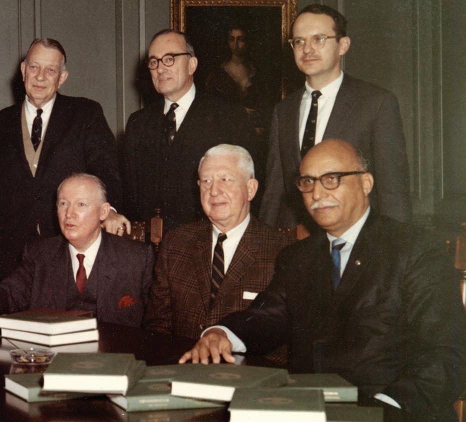 ❱ The original Commission on Constitutional Revision, pictured in 1968, was led by former Professor A. E. Dick Howard (standing, right) and included future Supreme Court Justice Lewis F. Powell Jr. (center).