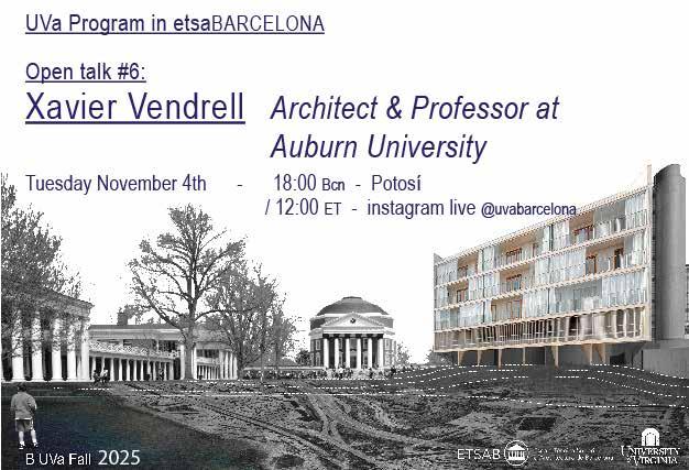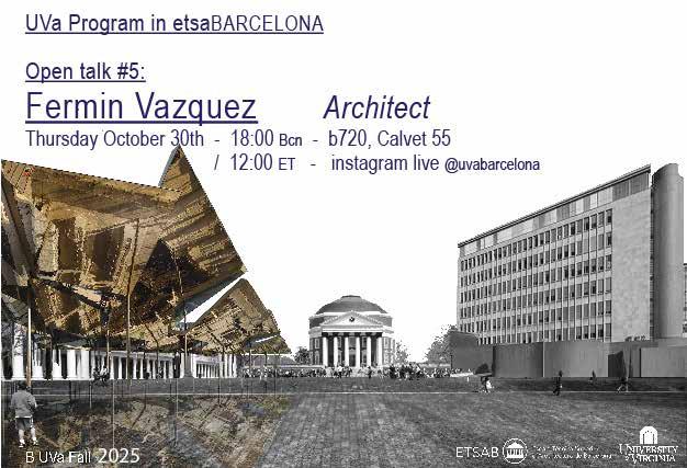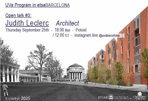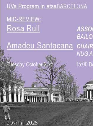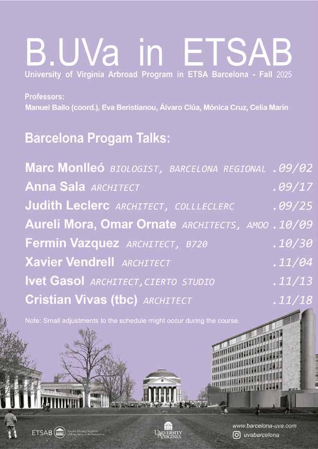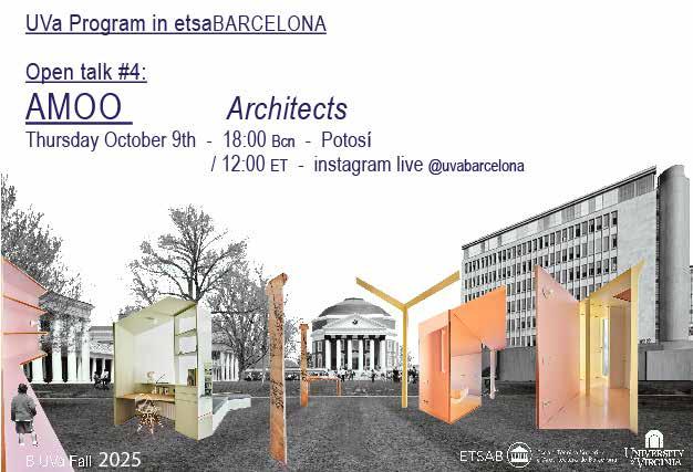 This year’s program also expanded its academic reach through three new lectures connected to the Mies van der Rohe and Thomas Jefferson Medals in Architecture. Students attended two lectures held directly at the Mies van der Rohe Pavilion in Barcelona, delivered by Kate Orff and Andrew Freear, whose work addresses questions of landscape, community, and social responsibility in design. Experiencing their perspectives within the iconic pavilion created a powerful dialogue between contemporary practice and one of modern architecture’s most influential spaces. The lecture series continued in Charlottesville with a talk by Gustav Düsing, establishing a transatlantic thread between Barcelona and UVA. This emerging relationship between the Mies van Der Rohe Foundation and the University of Virginia contributes to making the School of Architecture more visible within the European architectural realm, strengthening academic exchange, and positioning our university within a broader architectural international context.