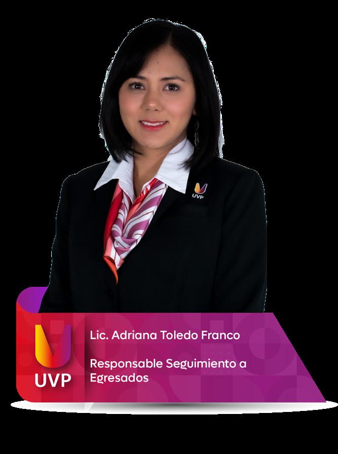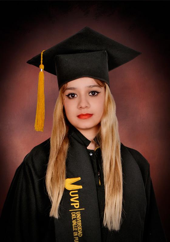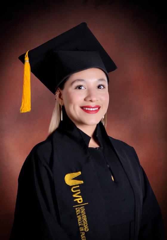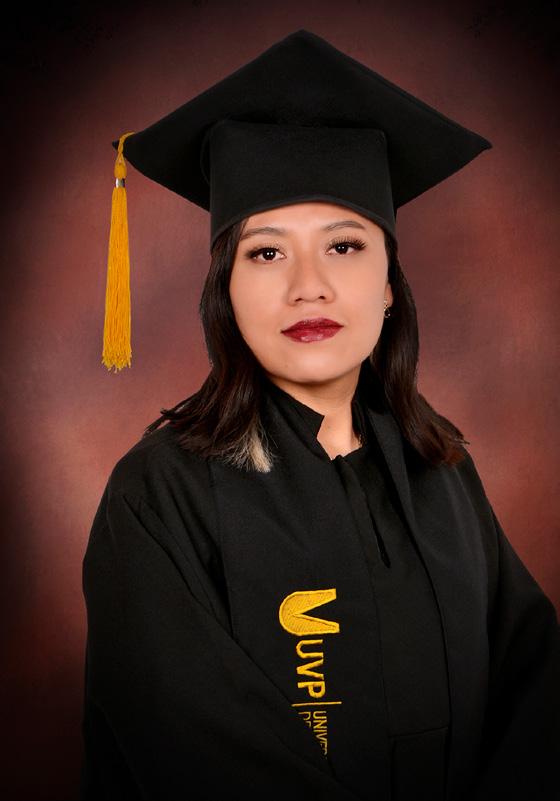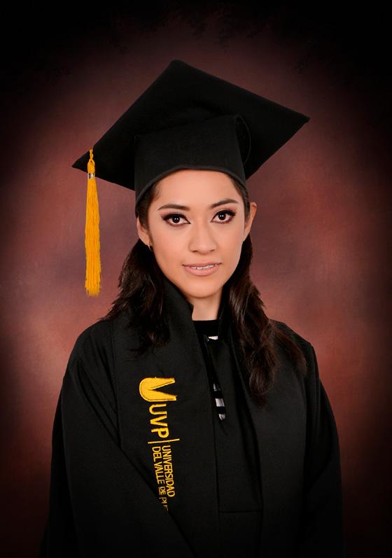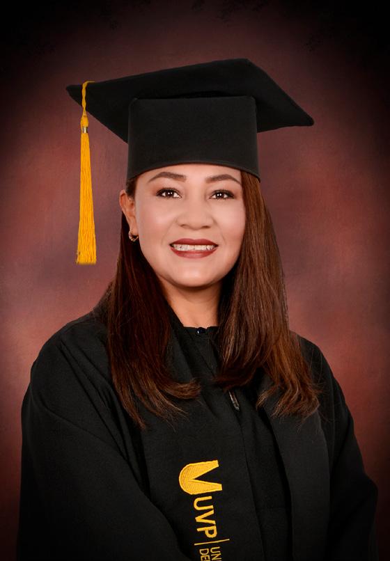 Les felicito con inmensa alegría y orgullo por el gran logro que representa para cada uno de ustedes el concluir esta etapa de preparación académica. Como lo han notado y vivido, no hay triunfo sin esfuerzo y ustedes han demostrado que con valentía, dedicación y pasión se pueden alcanzar las metas y todo aquello que se propongan en la vida. Estoy segura que sabrán aplicar el conocimiento adquirido y cada una de las herramientas que UVP les ha brindado.