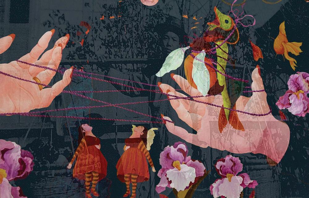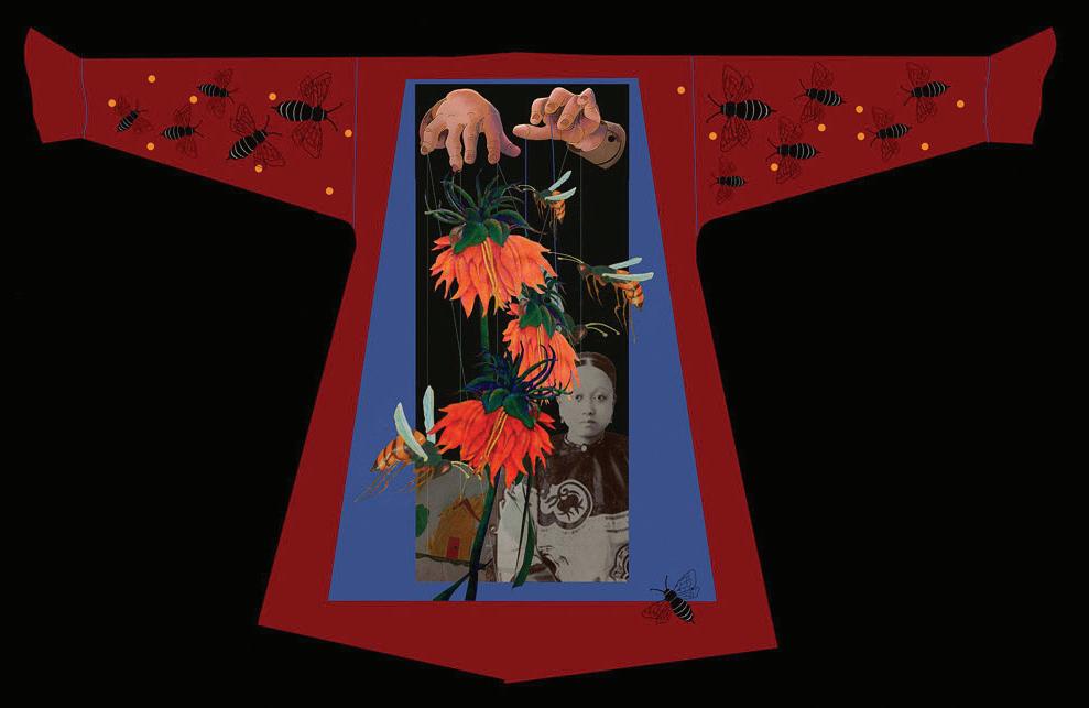 ‘Puppet Master,’ left, and ‘Eureka! Chinatown,’ below, are inkjet prints on archival paper. Using images from her own sculpture and painting as well as photographs, Leo-Gwin touches on themes of social justice and public counciousness.