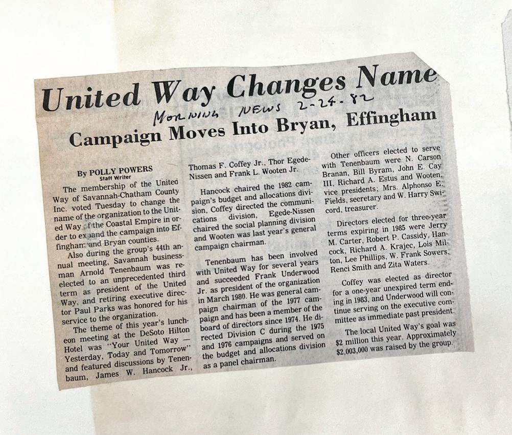 United Way of the Coastal Empire was built for this community by this community in 1938. Over the past 85 years, the leaders of this organization built a foundation that has strengthened our community. Today, it continues to be an essential part of the social services infrastructure we invest in to support each other and this place we love year after year.