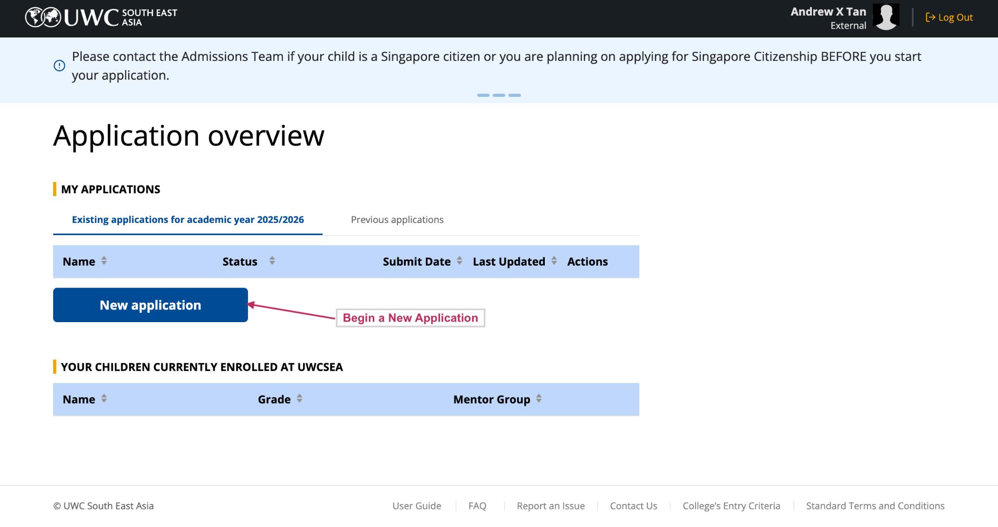 IfyourchildisaSingaporeCitizen(aloneorinconjunctionwithanothernationality)andiseligible toapplytotheCollegeunderourprevailingpolicies,pleasesubmitarequestforpre-submission approval.Theformforthisrequestwillappearafteryouhavecompletedthepreliminaryquestions pageandclickedonSubmit.