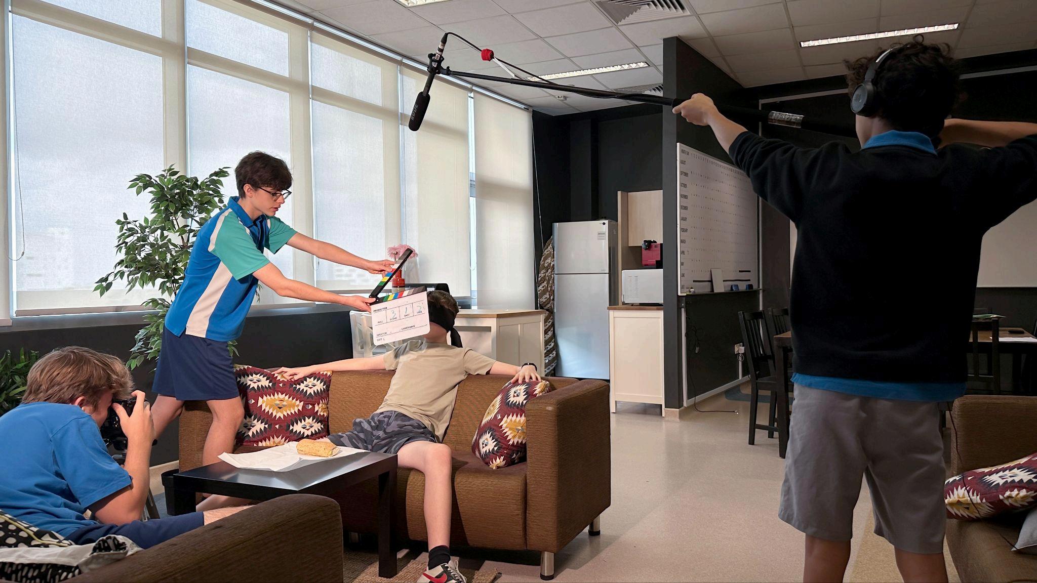 Grade9Filmstudentshavebeendevelopingthelanguageoffilmandbuildinganappreciationoftheprocess offilmmaking,bylearninghowtowrite,produce,andedittheirownfilms,andimplementing theproduction cycle