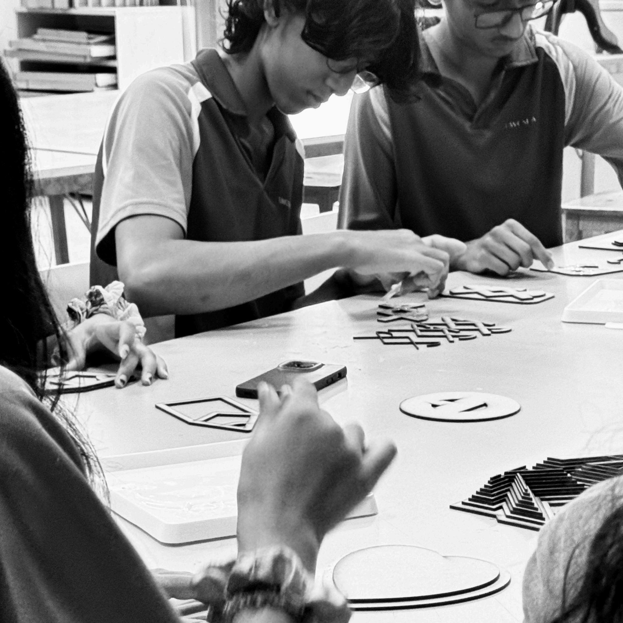 Thehands-onapproachtolearning,frompencilandpapersketchestodigitaldesignandph sicalcreationof thelogo,providesanintegratedlearningexperience. he creative process, reinforcing the connection betw ct realisation.