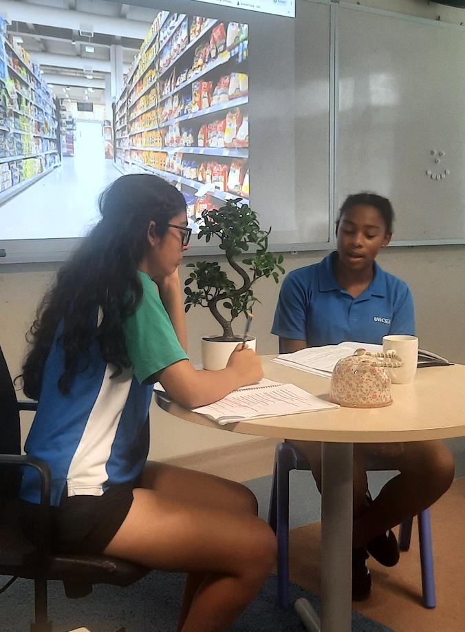 This term, the Grade 9s have focused on the topics of food and clothing, expandingkeyvocabularyand useful expressions Through theatre performances, students have practiced the language in creative situations. We have also reviewed basic concepts such as numbers, telling the time, and more, through interactivegameslikebingo,makingthelearningdynamicandfun.