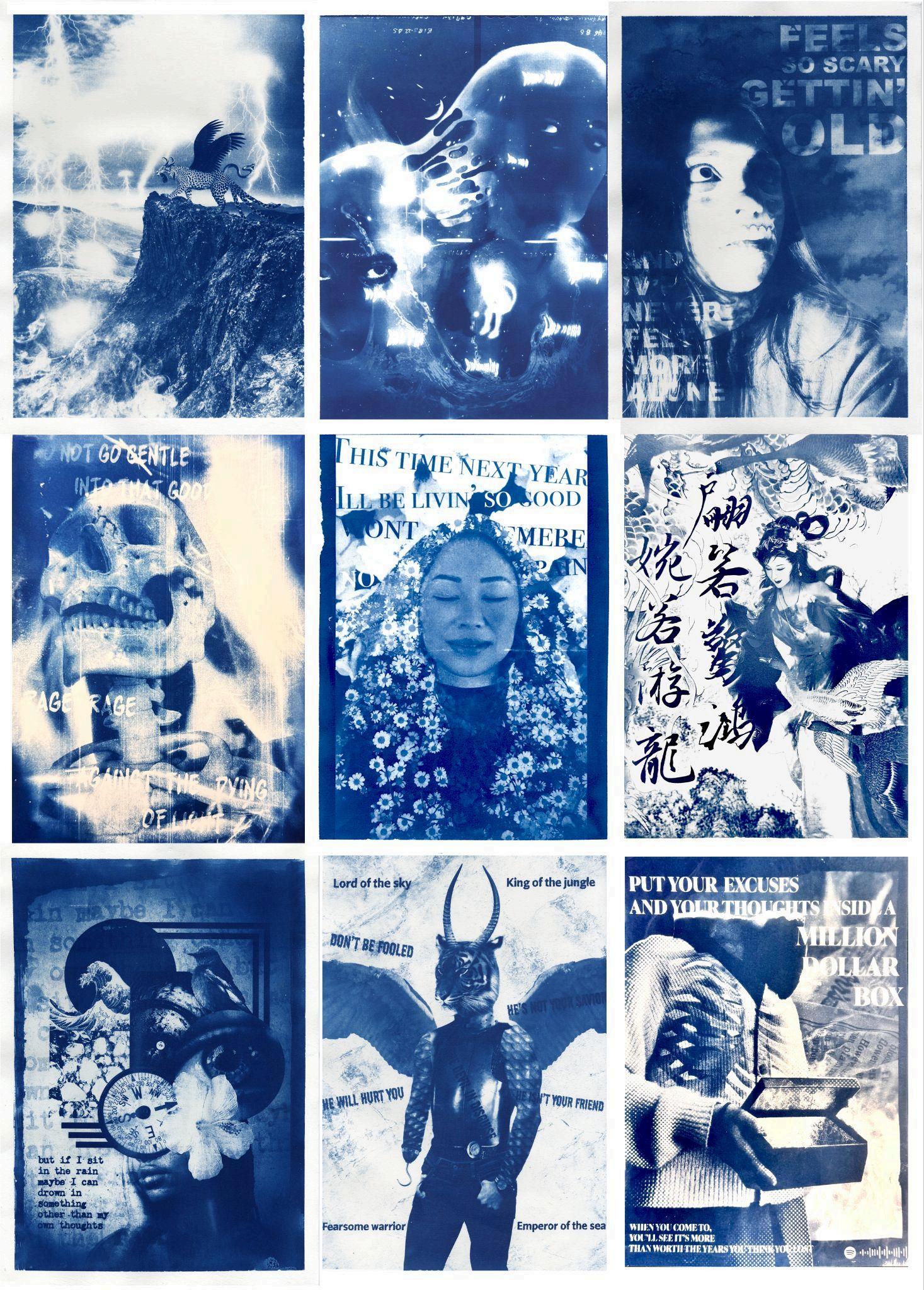 In our Image: Narrative & Storytelling unit, students explored the art of visual storytelling through Photoshop multiple exposure and digital collage techniques. Students chose from three projects:creating climatechangelandscapesthatvisualisedenvironmentaltransformation,designingvisualinterpretationsof poems or lyrics, or cra ing mythical creatures through digital artistry. Each project allowed students to demonstrate their technical skills whilstexpressingtheiruniquecreativevision Studentsthentransformed their digital outcomes into wet photography prints by creating striking cyanotypes, adding a beautiful traditionalphotographicelementtotheirdigitalwork.