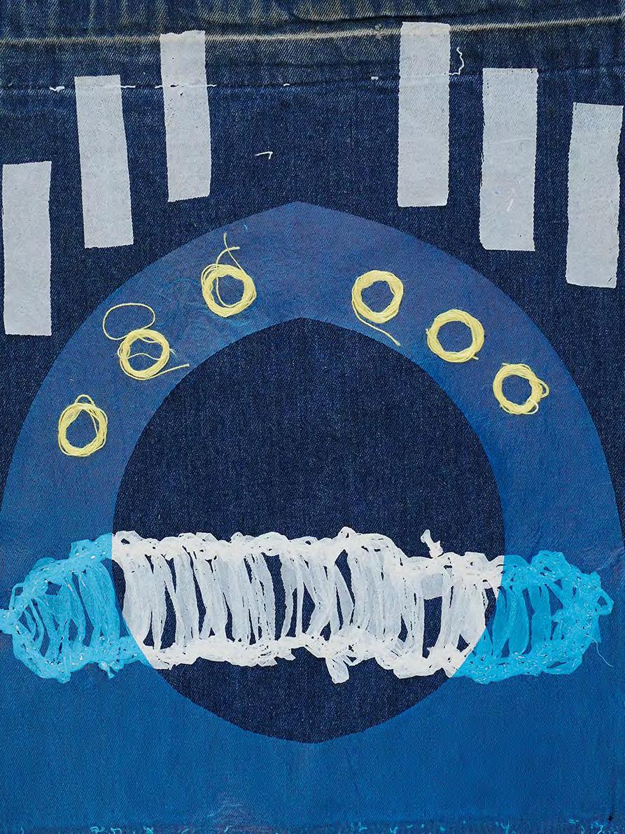 The West Coast, greenery and seascapes inspired me. From the breathtaking landscapes of West Wales to the rocky cliffs, scenic sandy beaches and beautiful rolling hills, I took inspiration to create embroidery and embellishments landscapes that would give an abstract representation of West Wales in a modern approach.