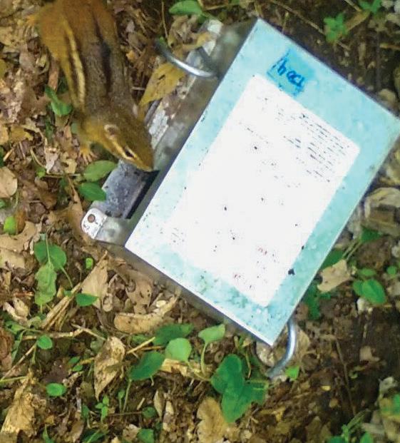 Top Right: A chipmunk approaches a bait box (Courtesy of Karen Fuenzalida).