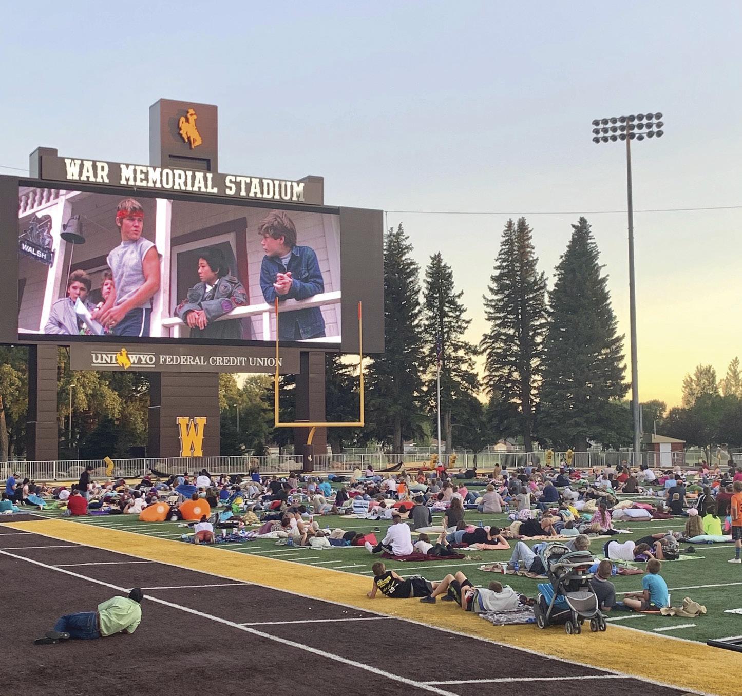 The partnership reaches well beyond the university to give back to the community. In addition to the story hour and similar outreach in schools across the state, UniWyo sponsors three movie nights in War Memorial Stadium each summer in non-pandemic years. The events are free, and credit union staff are there to hand out drinks and popcorn. Attendees also enter to win fun prizes. Last summer, UniWyo sponsored a drive-in movie.