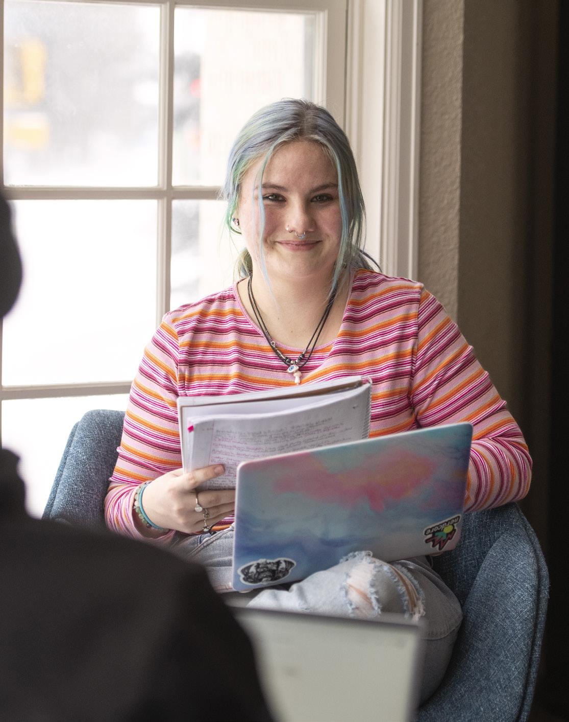 “My biggest college challenge thus far has been battling my mental illnesses,” says transfer student and psychology major (honors minor) Perlene Keller of Worland, Wyo.