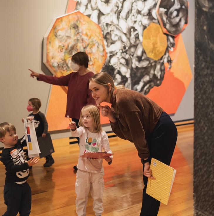 teaching artists is one of Connor’s favorite roles at the Art Museum. She says they are “really receptive to feedback, phenomenally collaborative and creative.” Conner adds that she is “excited by the fresh ideas they bring to the table.” Her passion for mentoring these emerging professionals trickles down throughout the work this team accomplishes. In 2022, it hosted over 1,300 pre–K through 12th grade students on field trips, 160 highschoolers in UW’s pre-college residential summer programs, and 574 participants in intergenerational programming.
