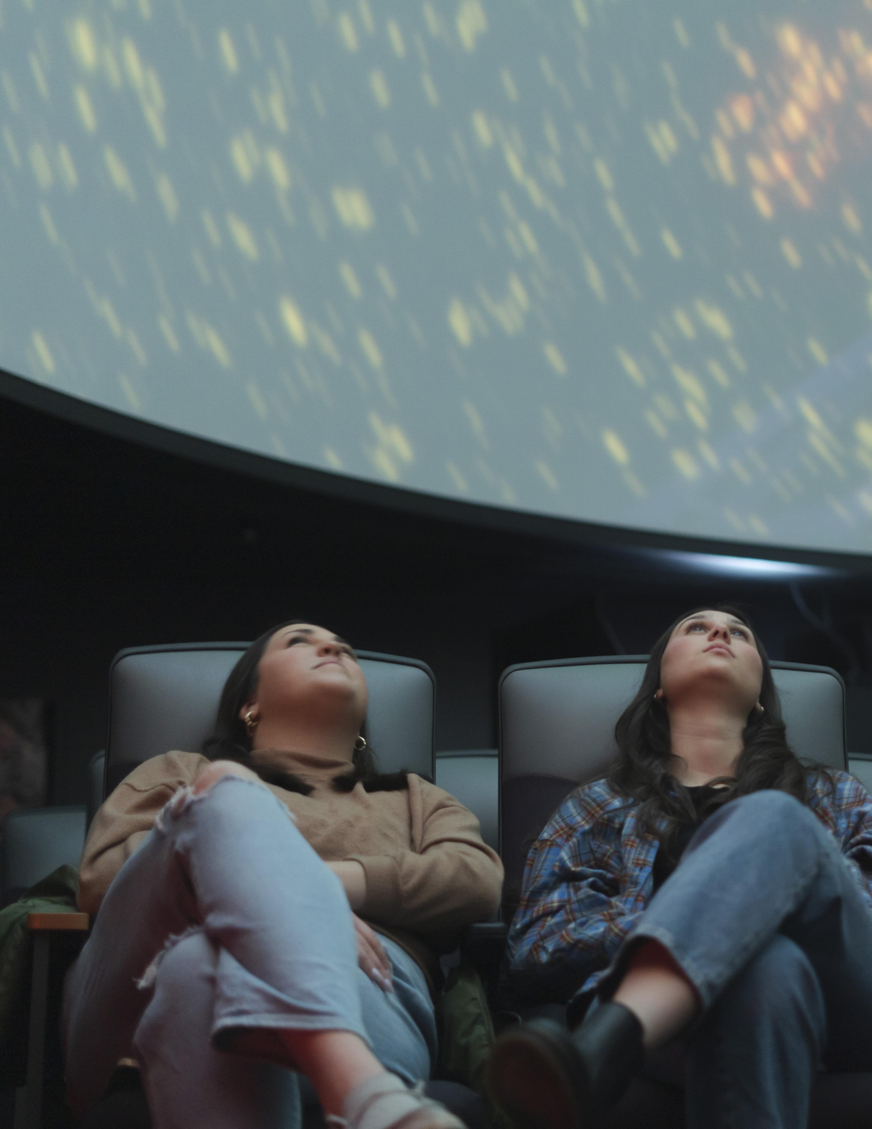 Students Sophia Fahleson, Maya DeLauro and Haley Kerr enjoy a presentation of “Liquid Skies” at the UW Planetarium. The UW Planetarium offers events year-round open to campus and the greater community.