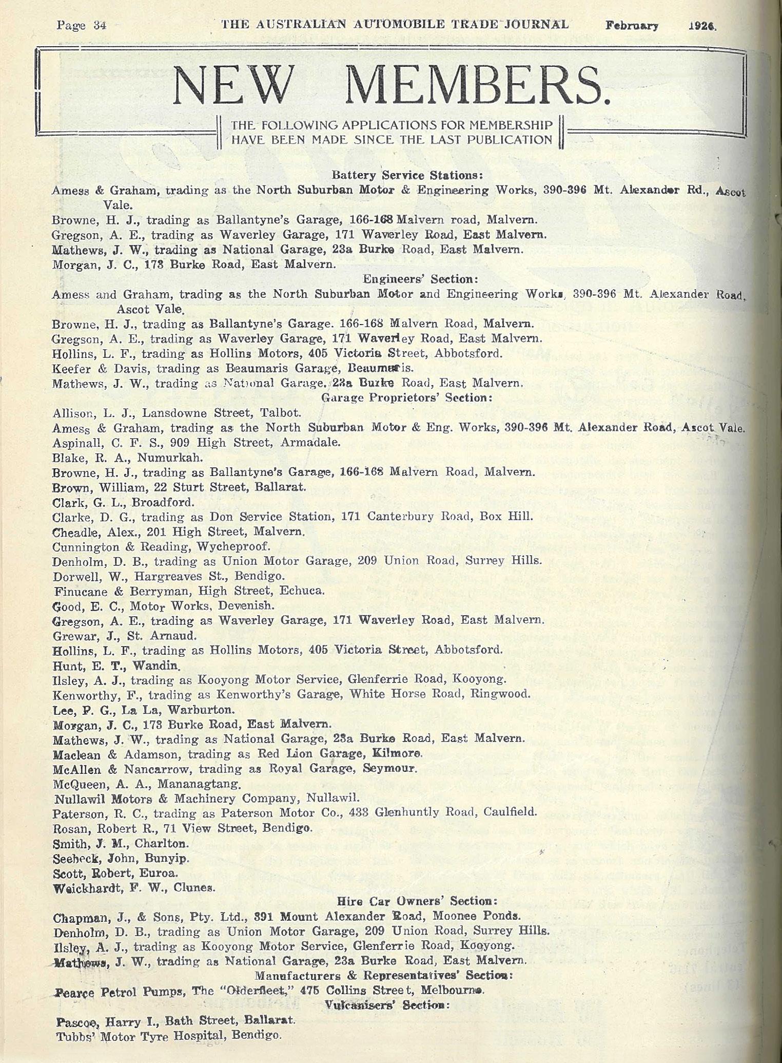 In February 1926, the new members
