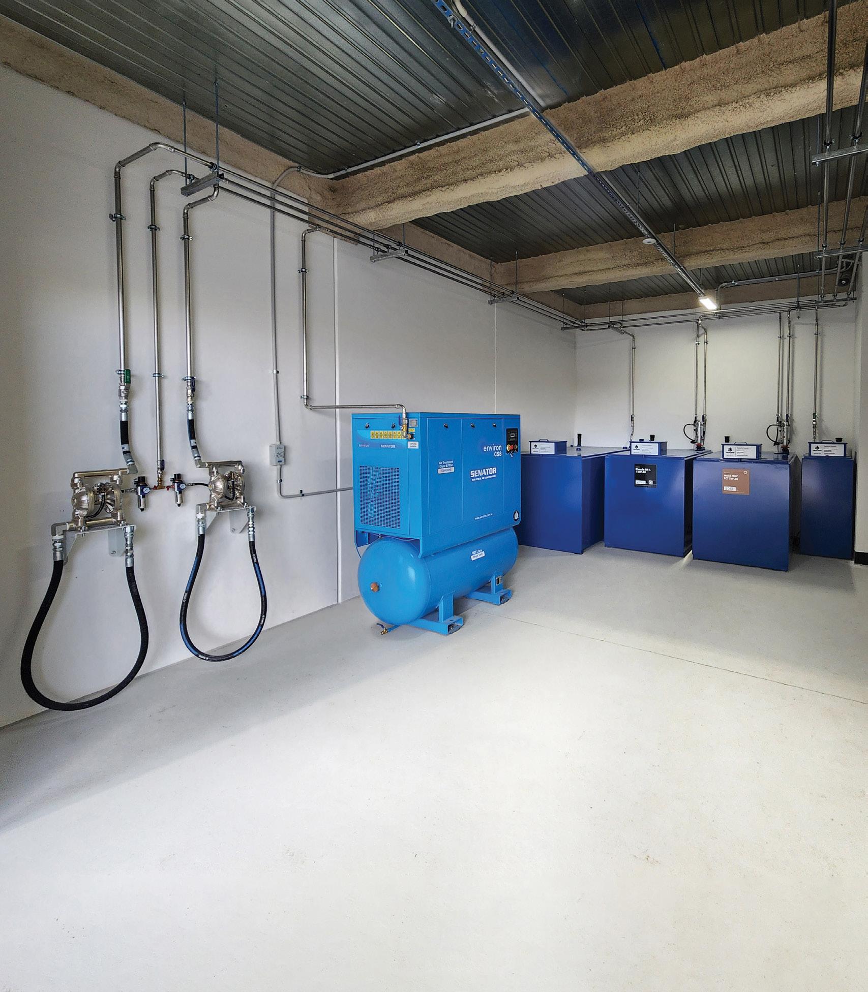 Stainless steel pipework for air, water and oil all help ensure product integrity and distribution throughout the largest of workshops.