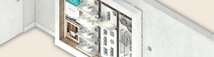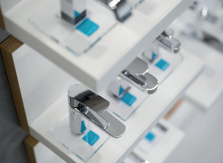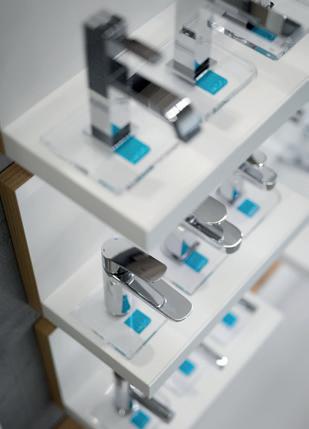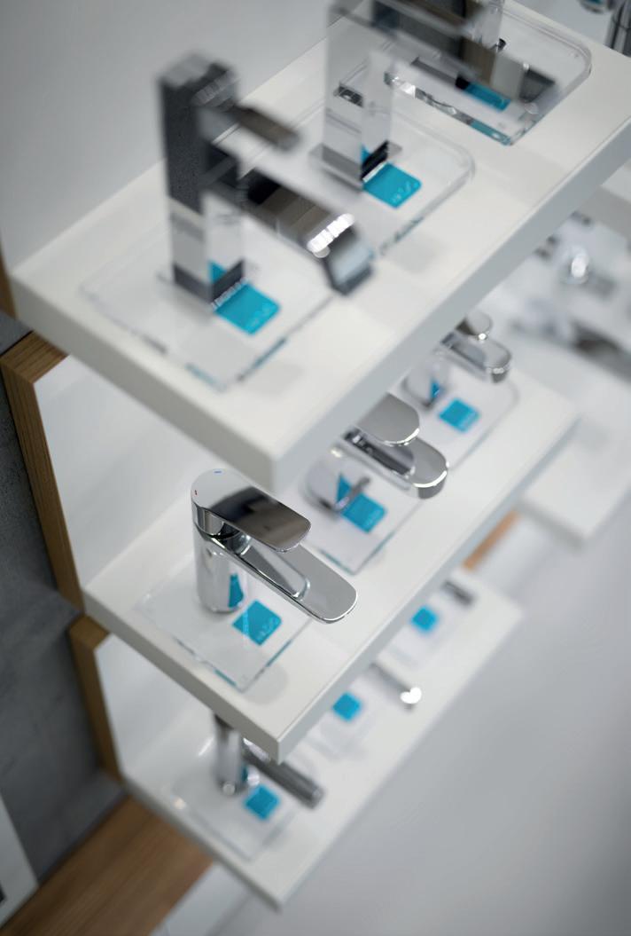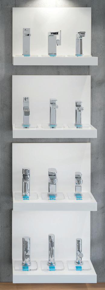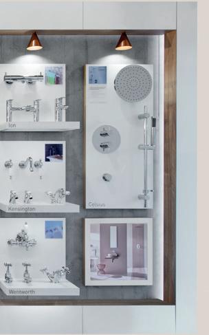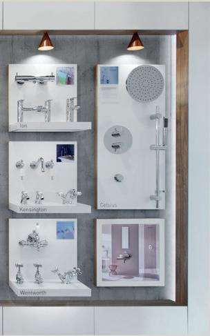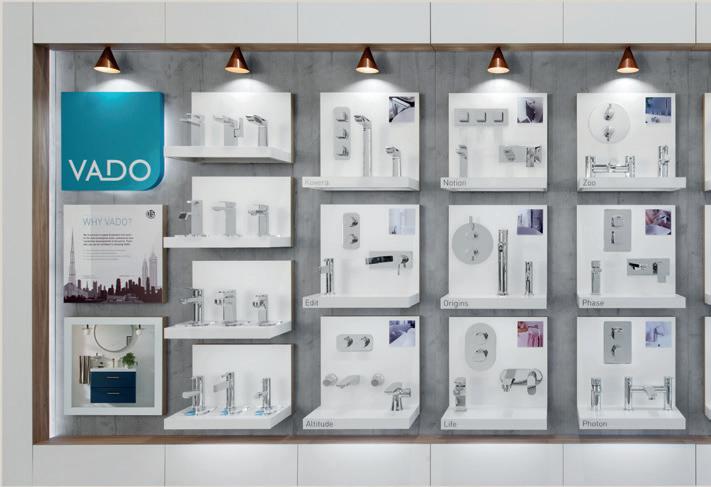 Each bay uses a display panel to hold carefully designed pods that exhibit the best selection of brassware to represent each VADO collection.