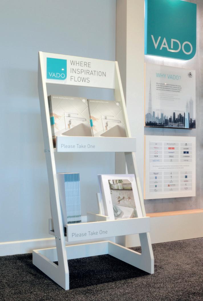 Freestanding or wall mounted catalogue holder to display and store VADO literature.