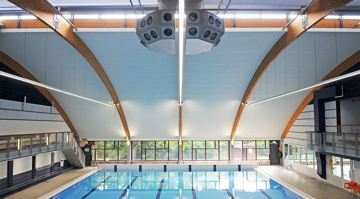 Un plafond tendu est une construction stable qui est non seulement extrêmement durable et adaptée à une utilisation (semi-) permanente, mais qui offre également de nombreuses possibilités et défis architecturaux. La toile du plafond tendu, ainsi que toutes les fixations et tous les profils, sont spécifiquement résistants au climat des piscines (températures élevées, forte humidité et chlore).