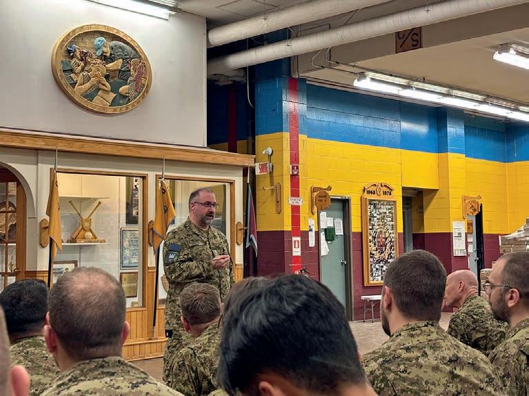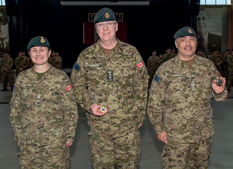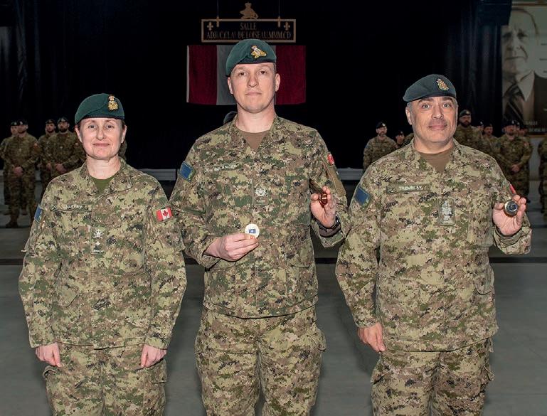 La cérémonie a débuté par le rassemblement de l’unité sous le commandement du lieutenant-colonel Alexandre Hottin. Les militaires, en formation ordonnée, ont ensuite accueilli la brigadière-générale Marie-Christine Harvey, commandante de la 2e Division du Canada, ainsi que la colonelle Véronique Gervais, chef d’état-major et représentante du Centre de doctrine et d'instruction de l’Armée canadienne (CDIAC). Les dignitaires ont passé les troupes en revue, saluant le professionnalisme et la discipline exemplaire de l’unité. Au-delà du changement de nom, cette cérémonie a également été marquée par un transfert d’autorité officiel entre la Bgén MarieChristine Harvey et la Col Véronique Gervais. Ce moment solennel a été ponctué par la signature de parchemins officiels ainsi que par un échange d’insignes divisionnaires, symbolisant la transition de responsabilité. Ce geste entérine le passage du CIA-Est de la 2 Div CA vers le CDIAC.
