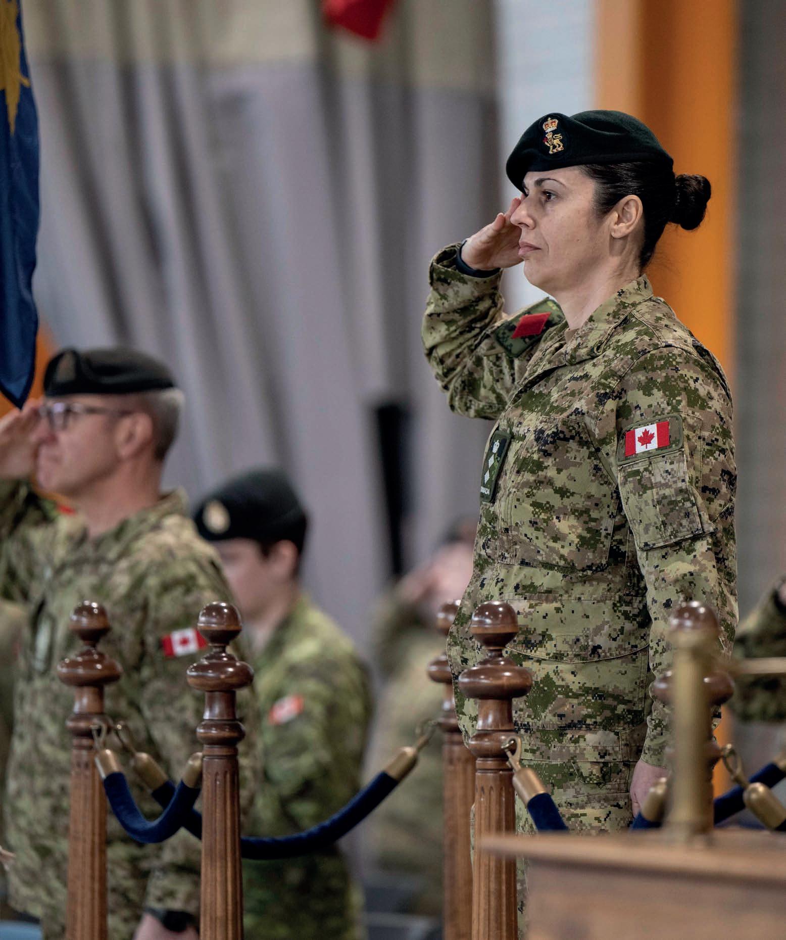 La brigadière-générale Marie-Christine Harvey, commandante de la 2e Division du Canada, passe en revue les troupes, le 2 avril 2026. Brigadier-General Marie-Christine Harvey, commander of the 2nd Canadian Division, reviews the troops, on April 2, 2026.