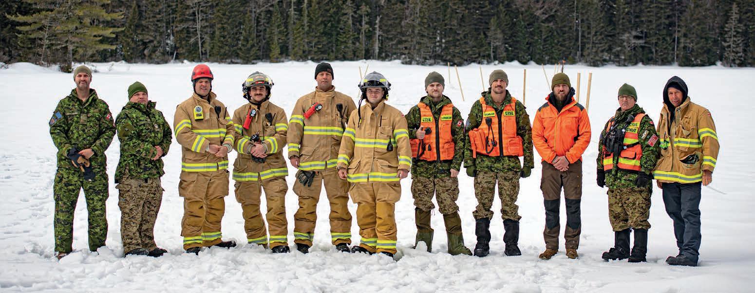 Coordinated by the Valcartier Ranges and Training Areas (RTA) and the Base Fire Department, the exercise tested the management, safety, and synchronization of operations in the training areas. A simulated incident (two people falling through the ice into a frozen lake) triggered the response chain.