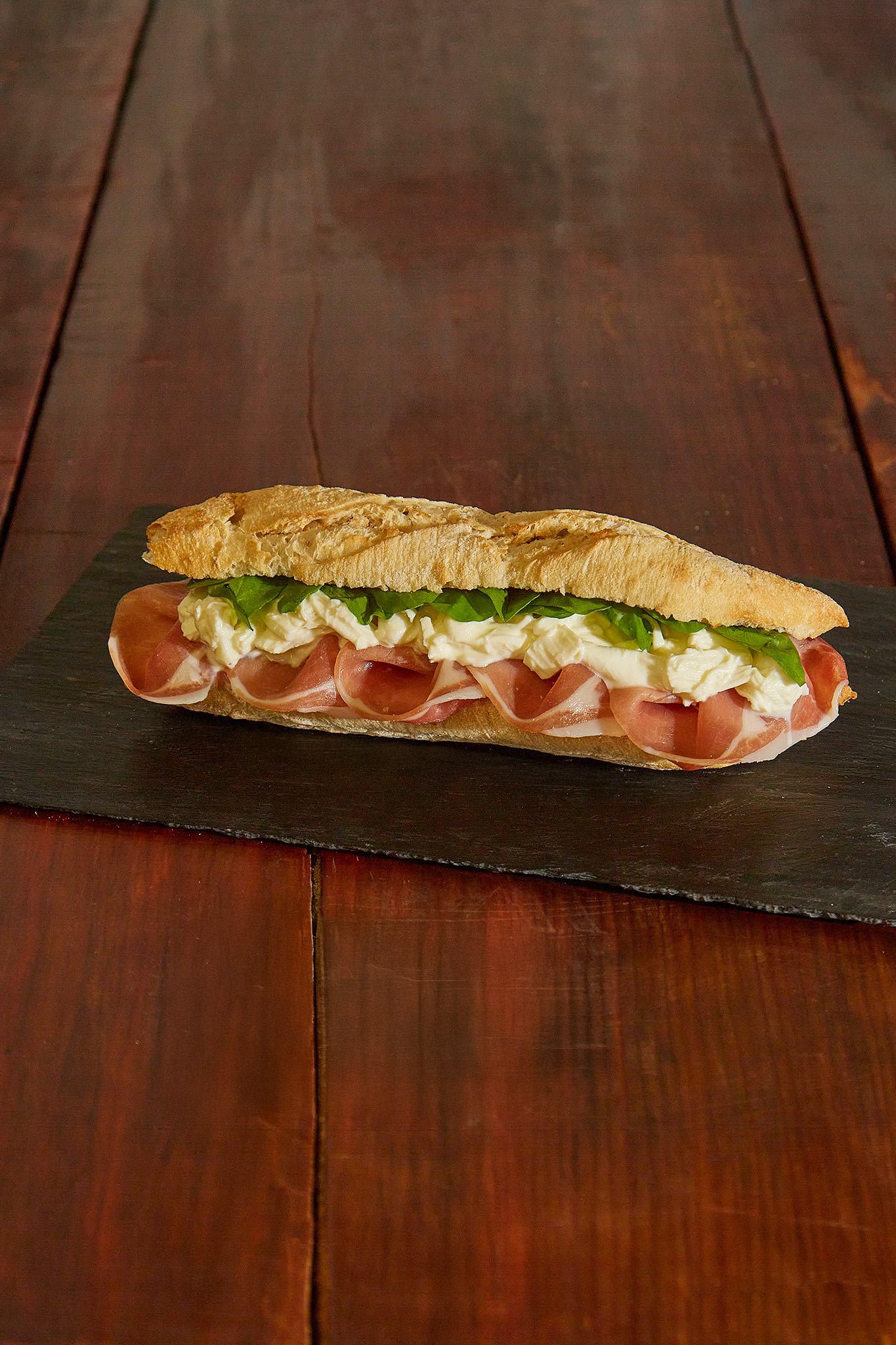 Jamón Crudo Nacional 12 meses de maduración, Burratina & Rúcula.