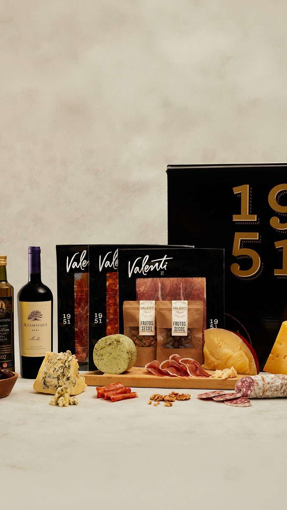 Parmesano Grana Morbier Queso con Pimienta Jamón Crudo Serrano Español 16 meses Salame Fuet Aceite de Oliva D.V. Catena Snack Maní con Chocolate Catalpa Cabernet Franc