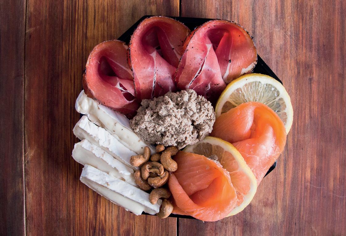 Gruyere Bola De Nieve, Fior Di Latte, Queso Gouda, Parmesano al Aceto, Petit Suisse Alem谩n, Jam贸n Crudo Tipo Parma 12 meses de Maduraci贸n, Jam贸n Natu ral Valenti, Lomo Munich Ahumado, Salame tipo Italiano, Mortadela con Pista chio, Pat茅 al Champagne, Aceitunas Negras Descarozadas, Corazones de Alcau ciles, Aceitunas Verdes rellenas con Morr贸n, Damascos, Nueces Peladas, Tomates Secos.