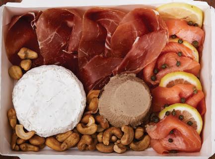 Jam贸n Crudo Provence, Mini Pat茅, Casta帽as de Caj煤 sin sal, Mini Camembert, Salm贸n Nacional Patagonian