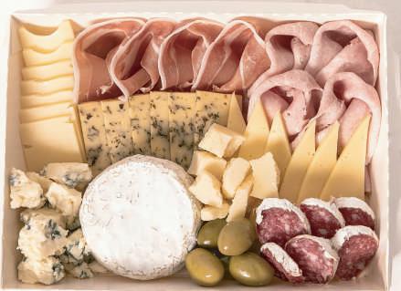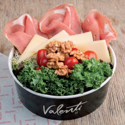 Gruyere Bola De Nieve, Fior Di Latte, Queso Gouda, Parmesano al Aceto, Petit Suisse Alem谩n, Jam贸n Crudo Tipo Parma 12 meses de Maduraci贸n, Jam贸n Natural Valenti, Lomo Munich Ahumado, Salame tipo Italiano, Mortadela con Pistachio, Pat茅 al Champagne, Aceitunas Negras Descarozadas, Corazones de Alcauciles, Aceitunas Verdes rellenas con Morr贸n, Damascos, Nueces Peladas, Tomates Secos.